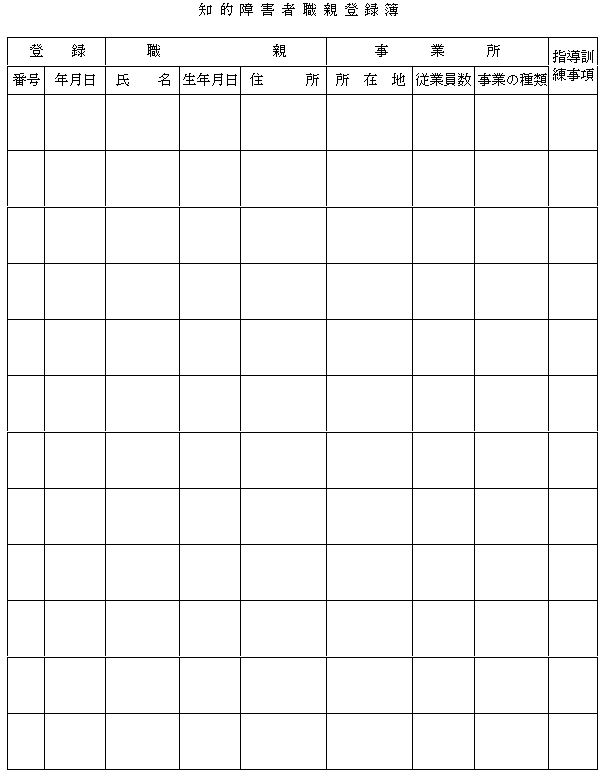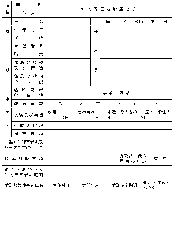 第4条 村長は、知的障害者職親台帳(別記様式第1号)を作成し、常にその記載事項について整理しておかなければならない。