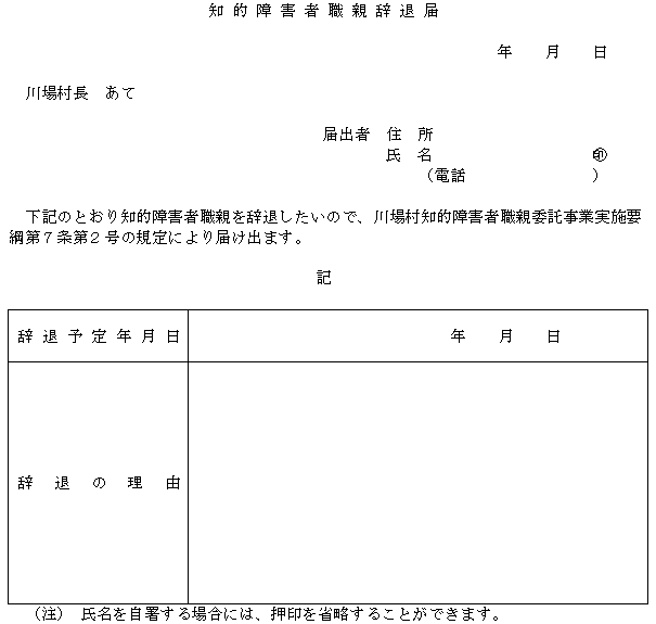 (2) 職親を辞退しようとするとき。知的障害者職親辞退届(別記様式第7号)