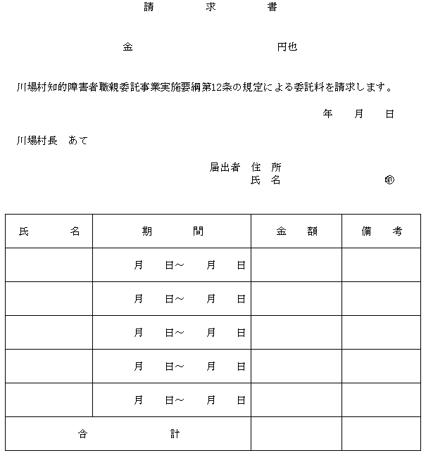 2 職親は、請求書(別記様式第11号)を翌月の10日までに村長に提出するものとする。